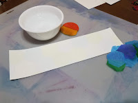 Just by looking at the art at work, I thought you cut up tissue paper, "paint" water on your paper, lay down the tissue paper, and let it dry. As you can see above, that doesn't work. I got on Pinterest to see what I did wrong. Apparently, you have to use bleeding tissue paper. Who knew?